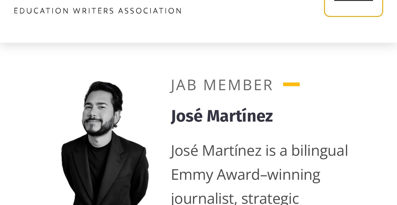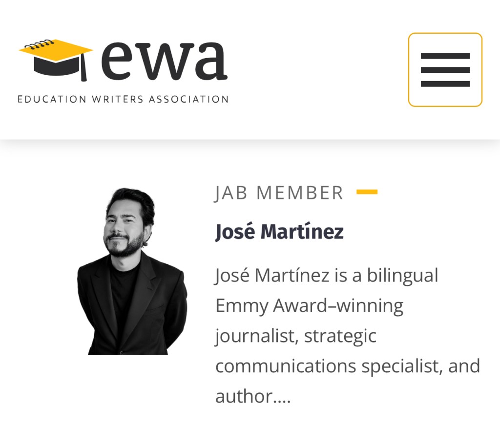 Washington, D.C. – October 2025 — Emmy Award–winning journalist, strategic communications specialist, and author José Martínez has been appointed to the Journalist Advisory Board of the Education Writers Association (EWA), the nation’s professional membership organization for journalists who cover education.